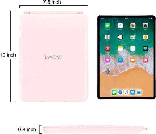 deweisn Folding Travel Mirror Lighted Makeup Mirror with 72 LEDs 3 Colors Light Modes, USB Rechargable, Portable, Ultra Thin, CompactVanity Mirror with Touch Screen Dimming for Cosmetic (Pink)