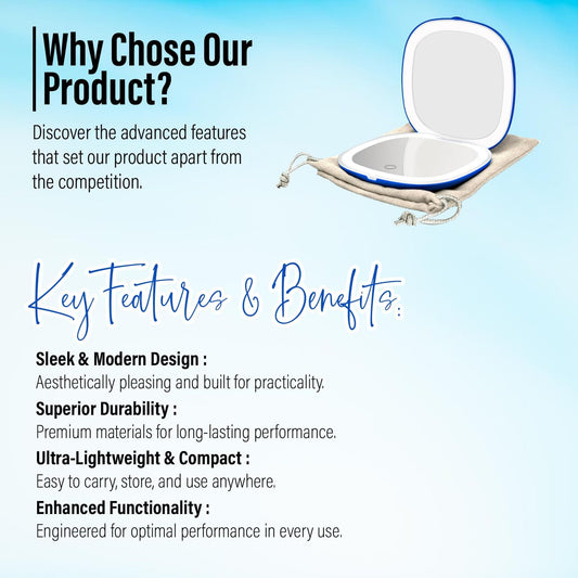 LED Compact Mirror – 1x & 10x Magnification | Travel Makeup Mirror with Adjustable Lighting | Handheld & Pocket-Sized Portable Mirror with Protective Pouch (Blue)