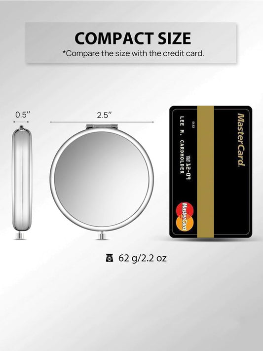 Compact Mirror Bulk, Set of 2 Double-Sided 1X/2X Magnifying Purse Pocket Makeup Mirrors(Round, Gold and Silver)