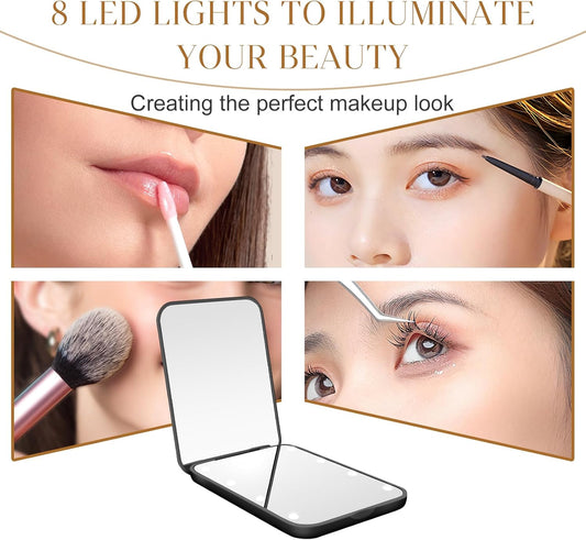 3X Magnifying Makeup Mirror with Lights, LED Compact Travel Mirrors for Pocket,Purse, Double-Sided Foldable Handheld, Vanity Mirror with Lights, Makeup Vanity Desk Bathroom, Gifts for Women
