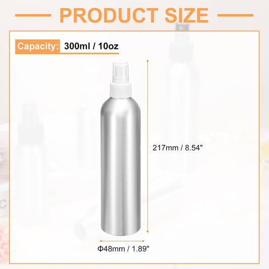 HARFINGTON 5pcs Aluminum Fine Mist Spray Bottles 300ml/10oz Metal Small Liquid Alcohol Refillable Travel Container with White Plastic Nozzle Cap for Perfume Skincare Cosmetic Storage Bottle