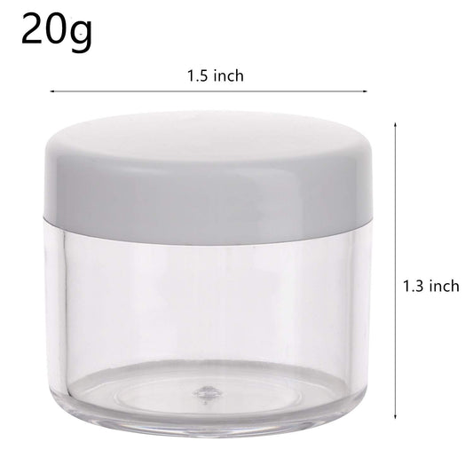 Refillable Cosmetic Sample Jars - 100 Pack 20g (0.7oz) Clear Small Travel Containers with Lids + 10 Mini Makeup Spatulas - BPA Free
