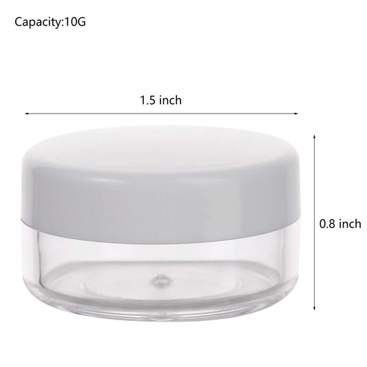 Refillable Cosmetic Sample Jars - 100 Pack 10g (0.35oz) White Small Travel Containers with Lids + 10 Mini Makeup Spatulas - BPA Free