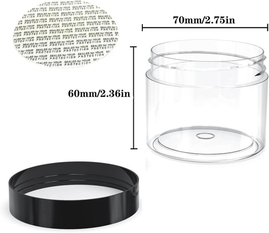 50pcs 2 oz Clear Plastic Round Jars with Black Lids, 2oz 60ml Leak-Proof Wide-Mouth Cosmetic Storage Containers for Kitchen Use, Beauty Products, Cream, Scrubs, Bath Salt and More