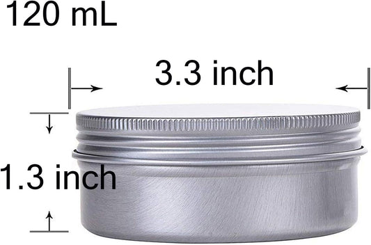 4 Ounce Aluminum Tin Jar Refillable Containers 120 ml Aluminum Screw Lid Round Tin Container Bottle for Cosmetic,Lip Balm, Cream, 12 Pack.
