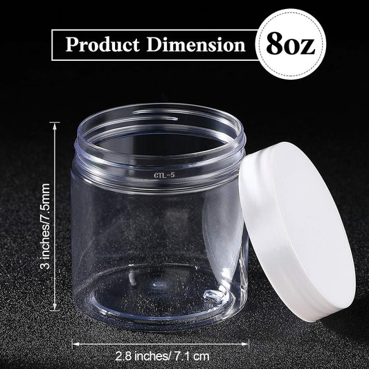 24 Pieces Empty Clear Plastic Jars with Lids Round Storage Containers Wide-Mouth for Beauty Product Cosmetic Cream Lotion Liquid Butter Craft and Food (Black Lid, 8 oz)
