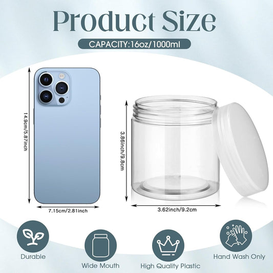 Patelai 4 Pieces Round Wide-mouth Leak Proof Plastic Container Jars with Lids for Travel Storage Makeup Beauty Products Face Creams Oils Salves Ointments DIY Making(32 Ounce,Clear)