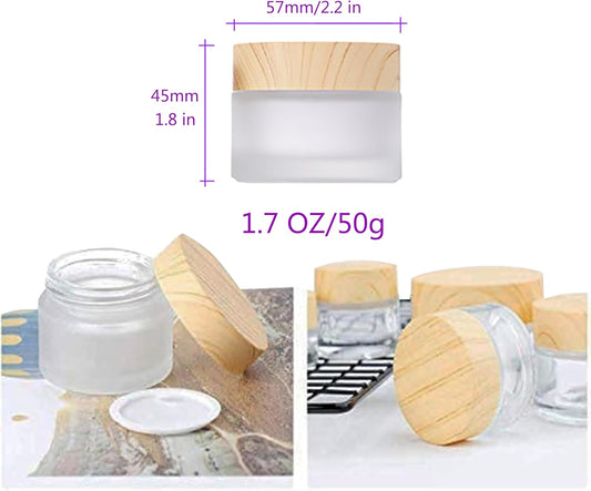 50 Gram/50 ml Empty Sample Jars Round Frosted Glass Bottle Cosmetic Cream Jar Wood Grain Lid Cosmetic Container Glass Cream Box Refillable Cream Pot Jars for Lip Balm Lotion Eyeshadow,4 Pack