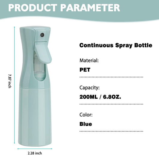 Spray Bottle for Hair (6.8OZ /200ML) Continuous Ultra Fine Mist Sprayer for Hair, Salons, Barber, Plants, Skin Care, Cleaning 1 Pack BLUE