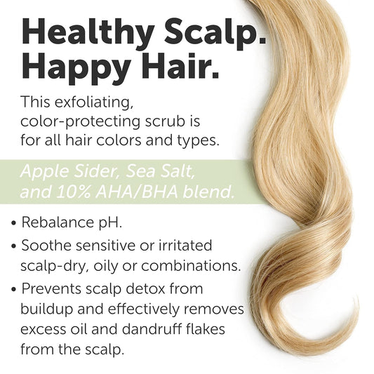 Apple Cider & Sea Salt Green Scalp Scrub Sulfate-Free | 10% AHA & BHA | Exfoliating Hair & Scalp Treatment for Detox, Dandruff & Build-Up | Scalp Exfoliator Hair Scalp Scrub | Refreshing ( 16 Fl Oz )