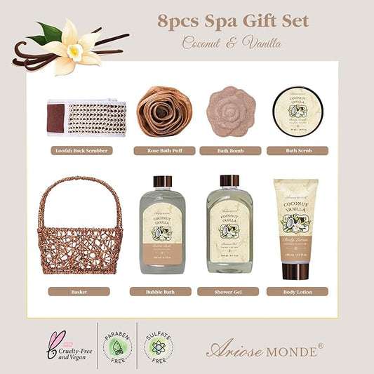 Spa Gift Baskets - Coconut Vanilla Bath Gift Set for Women, Luxury Relaxing Spa Kit with Bath Bombs, Body Lotion and Body Scrub, Birthday Gifts for Women, Christmas Spa Gifts for Mom
