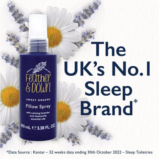 Feather & Down Sleeping Bag Gift Set: Luxury Eye Mask, Sleep Balm, Pillow Spray and Shower Cream, with Calming Lavender & Chamomile Essential Oils, Vegan & Cruelty Free