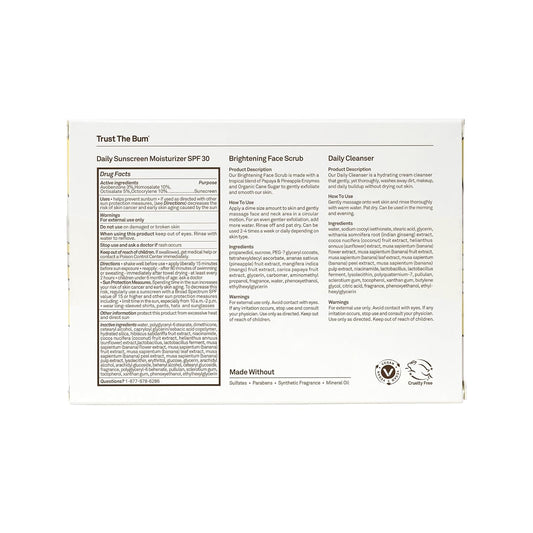 Sun Bum Skin Care Travel Essentials Kit | Cleanse, Brighten, Moisturize, Protect with Daily Cleanser, Brightening Face Scrub, and Daily Sunscreen Moisturizer | Includes Aloha Collection Travel Pouch