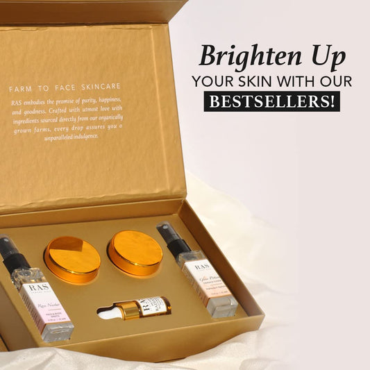 Quick Glow Kit, Hydrating Essence Toner, Exfoliating Face Cleanser, 24K Gold Face Elixir, Face Gel Serum, Face & Body Toner | Smoothens & Softens Skin, Deep Cleanser | Set of 5 - RAS LUXURY OILS