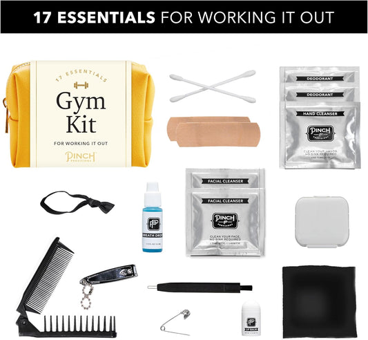 Pinch Provisions Gym Kit, includes 15 Personal Care Essentials for Wellness & Beauty, Perfect for Gifts, Gym Bags, Duffle Bags & Lockers (Mustard)