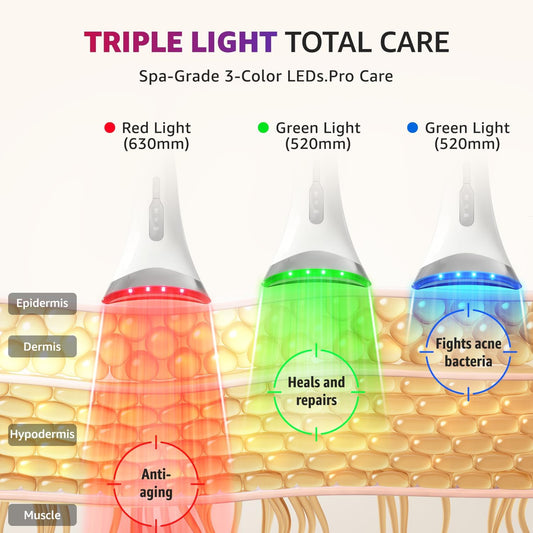 INIA 3-in-1 Red Light Therapy for Face and Neck, Skin Tightening Device True Beauty Glow Facial Massager for Skin Care, Effective Wrinkle Reduction Anti-Aging with Lifting, Tightening, Infusing
