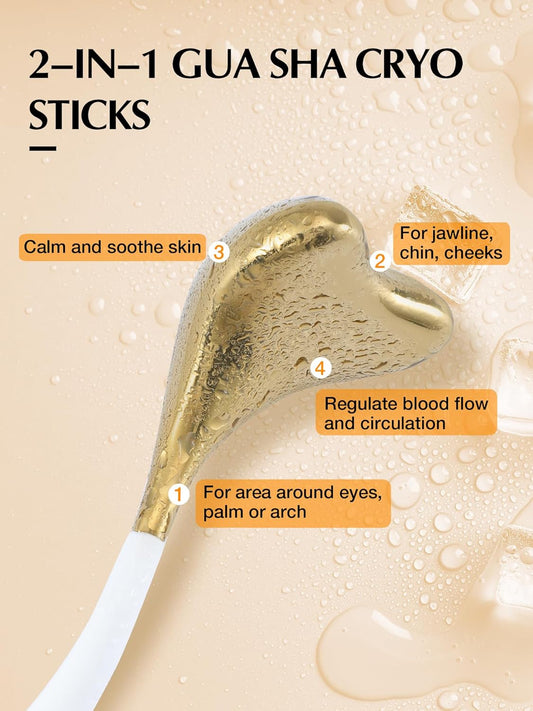 2-in-1 Gua Sha Cryo Sticks, Facial Skin Care Tools for Women Face and Eyes Massage, Unbreakable Stainless Steel Esthetician Supplies, Cooling Spa Ice Globes Roller with Carry Case