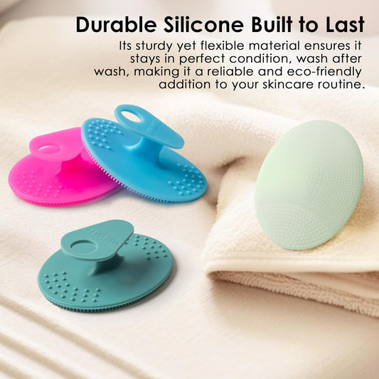 INNERNEED Silicone Face Cleansing Scrubber, Exfoliating Scrub Manual Handheld Facial Brush Blackhead Remover, Food-Grade Soft Bristle (Pack of 4)