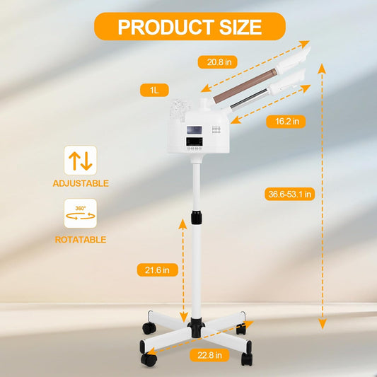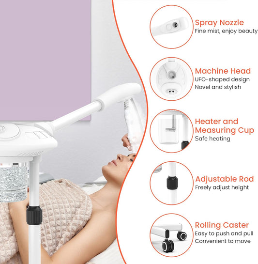 Professional Facial Steamer, Stand on Wheels Face Steamer, SPA Ozone Nano Steamer for Facials