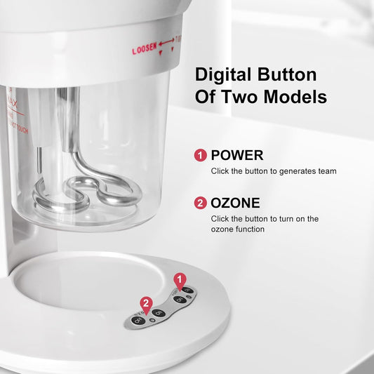 TASALON Professional Facial Steamer with Ozone, Vapor ozono Facial Steamer Professional for Clean Skin, Firm Pores, Esthetician Steamer for Home or Salon Use, Adjustable Height and Angle,White