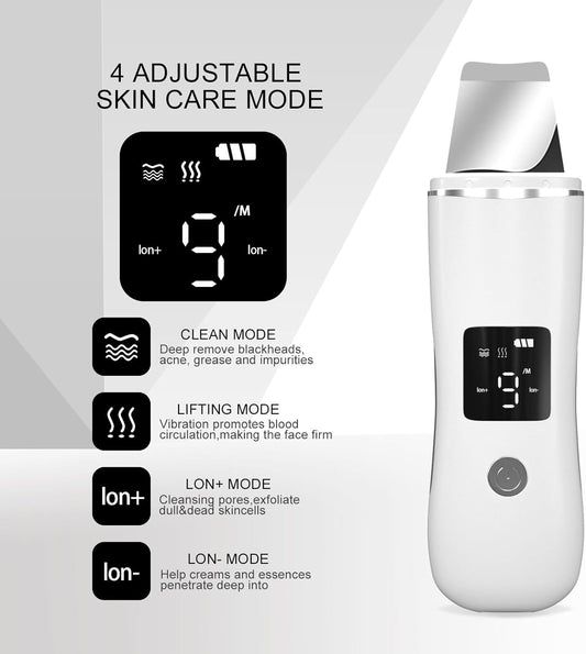 UNIWA Skin Scrubber Face Spatula, Skin Scrubber Pore Cleaner Blackhead Remover Tool for Deep Facial Cleansing - 4 Modes, Face Spatula with USB Charger, LCD Display, IPX7 Waterproof - White