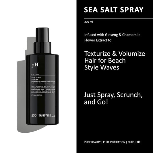 pH PURE HAIR Sea Salt Spray for Beach Waves - Volumizing Hair Spray for All Hair Types - Lightweight Unscented Formula for Textured Wavy Hair - Perfect for Curly, Wavy & Straight Hair - 6.76 Oz