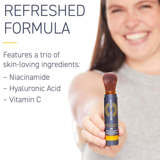 Brush On Block SPF 30 Mineral Powder Sunscreen New Formula, With Niacinamide, Hyaluronic Acid, & Vitamin C, Broad Spectrum, Water Resistant, Translucent, For All Skin Types, Reef Friendly, Mfg in USA