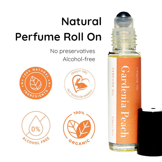 Gardenia Peach Delicious Pure Essential and Fragrance Oil Perfume Roll On with Organic Jojoba Oil, Eau de Toilette, Alcohol Free, Small-Batch, Made in California