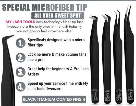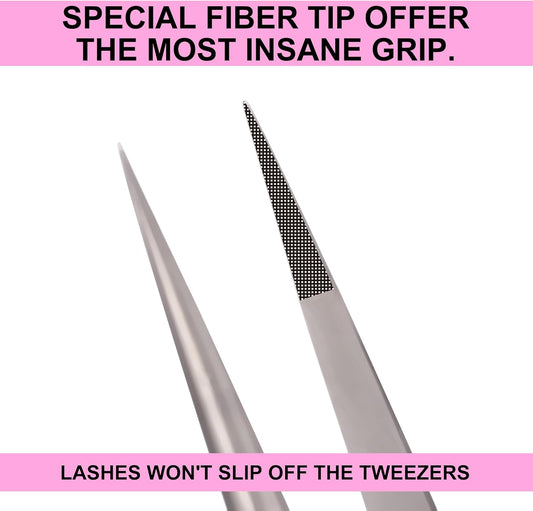 45 Degree Volume Fiber Tip Lash Tweezer Black –, Diamond Grip, Professional Eyelash Extension Tweezers (Black, All SET LASH TWEEZER)