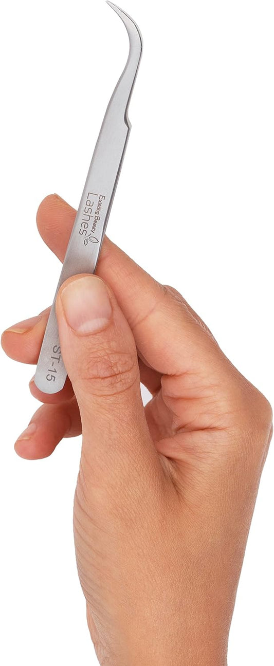 Curved Classic & Volume Fiber Tip Lash Tweezer – SLAY CURVE, Diamond Grip, Professional Eyelash Extension Tweezers, Precision Lash Tool (Black)