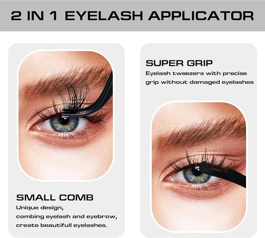 2 in 1 Lash Extension Tweezers with Comb, Stainless Steel Elbow Eyelash Extension Tweezers, Eyelash Tweezers for Lash Extensions, Precise Eyebrow Tweezers Tool for DIY False Eyelashes Clusters, Black