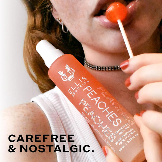 Ellis Brooklyn PEACHES Hair And Body Fragrance Mist - Fruity Floral Perfume Mist For Women with Sweet Peach, Rosebud, & Sandalwood, Vegan Perfume, Made In The USA, 50ml 1.7 Fl Oz