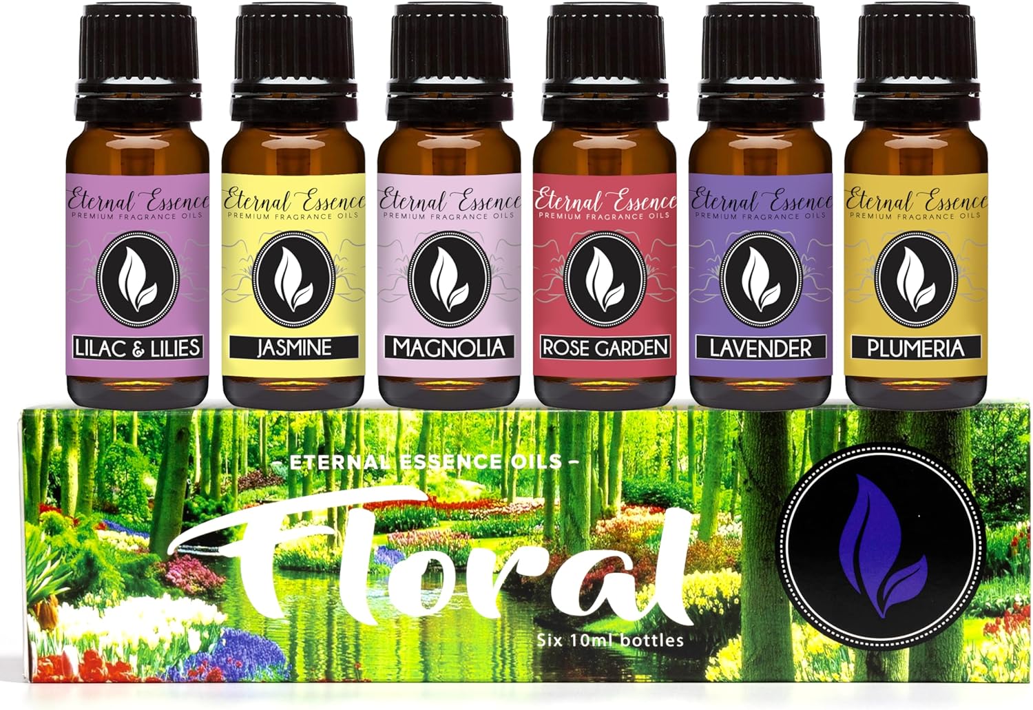 Eternal Essence Oils Floral Set of 6 Premium Fragrance Oils - Lavender, Lilac Lillies, Jasmine, Plumeria, Rose Garden, Magnolia Scented Oil - for Diffusers, Candle & Soap Making, & Aromatherapy