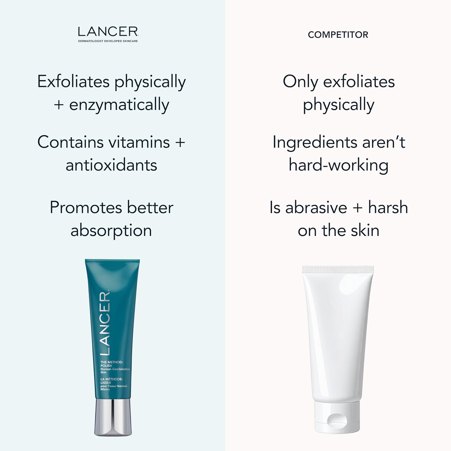 Lancer Skincare The Method: Polish Facial Exfoliator, Daily Exfoliating Face Scrub with Natural Minerals, Sensitive Dehydrated Skin, 4.2 Fluid Ounces