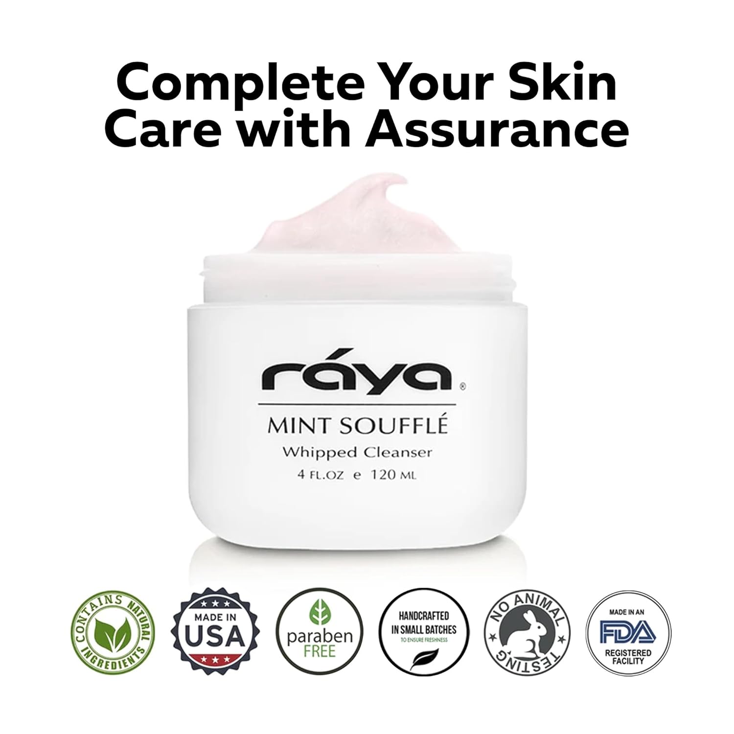 Raya Mint Soufflé Facial Cleanser (102) - Face Wash for Sensitive Skin, Combination & Oil Skin, Clears Pores, Sensitive Formula, Mint, 4 oz