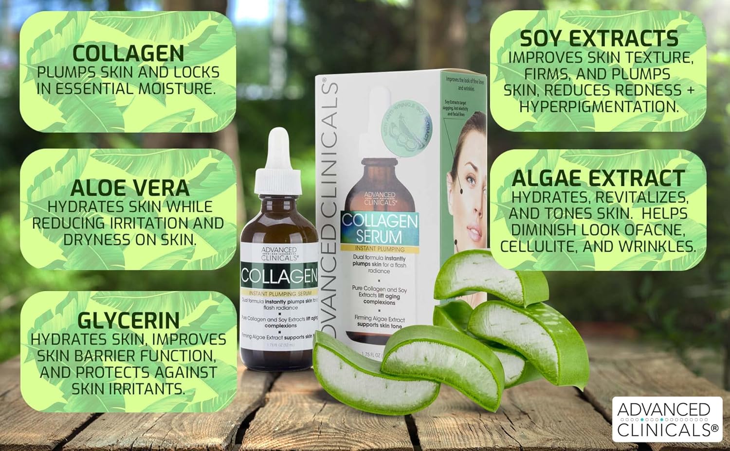 - Advanced Clinicals face serum set with Collagen, Retinol, and Vitamin C has all your aging concerns covered! Retinol serum, made with Vitamin A (the #1 anti-aging ingredient recommended by Dermatologist helps fight off wrinkles. Collagen helps plump dull skin and improves skin elasticity. Vitamin C helps with age spots, uneven skin tone, and expression lines.