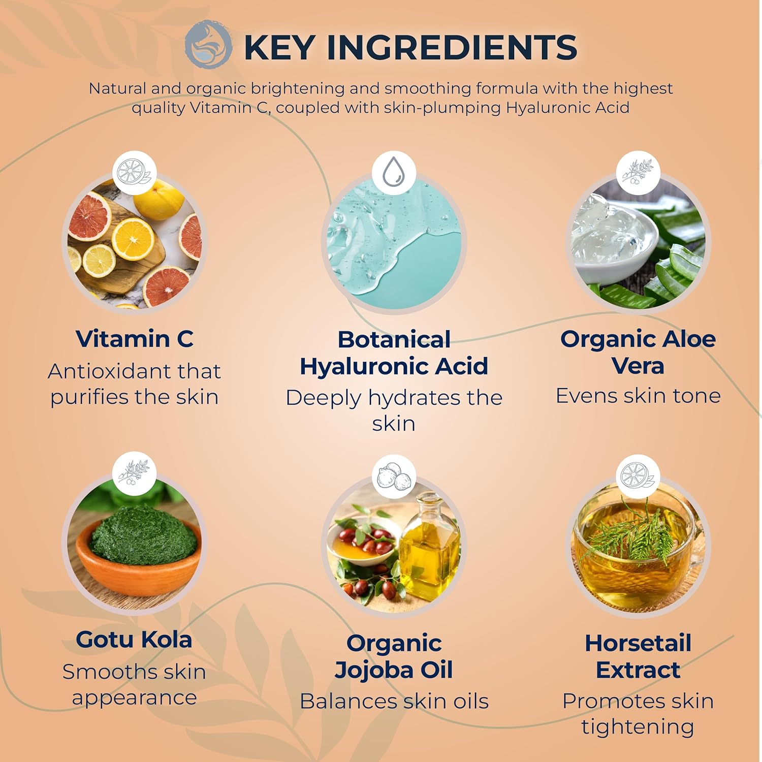 - ALL NATURAL VITAMIN C FACIAL SERUM - Brighten & Hydrate skin, restore firmness & elasticity to skin, even skin tone, fade fine lines and wrinkles & dark spots, while helping to fight back against pollutants and sun damage.