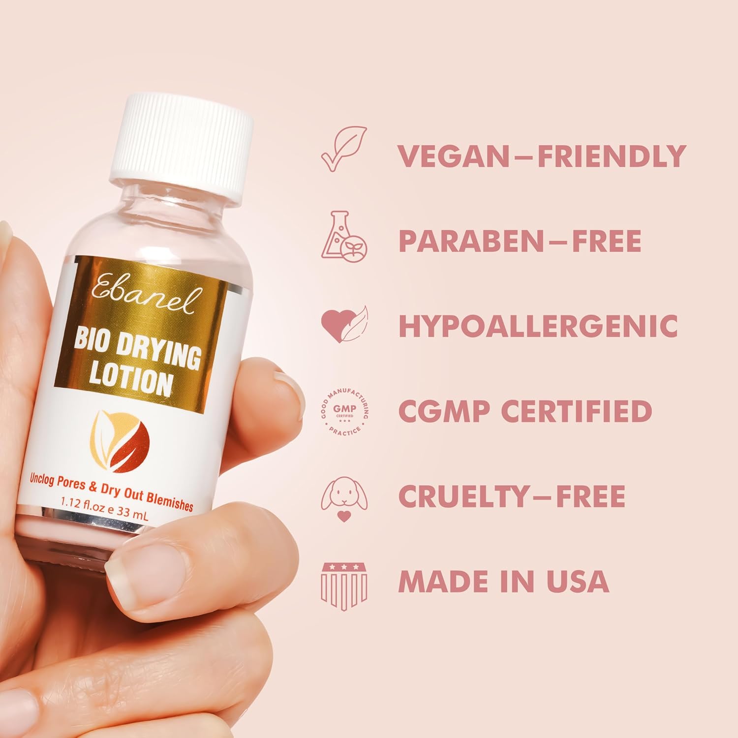 Ebanel Acne Spot Drying Lotion for Face & Body with Sulfur & Salicylic Acid, Targets Pimples & Zits, Helps Clear Pores and Reduce Surface Blemishes Overnight