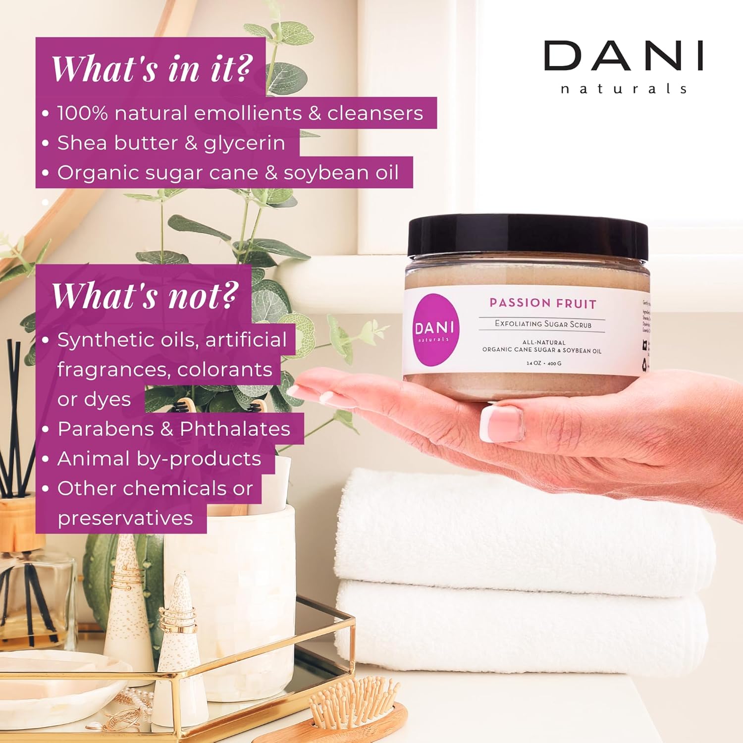 Naturals Sugar Scrub – Pure & Gentle Exfoliation with Juicy Passion Fruit Scent. Organic sugar, shea butter, and nourishing oils for smooth, soft skin – 14 oz