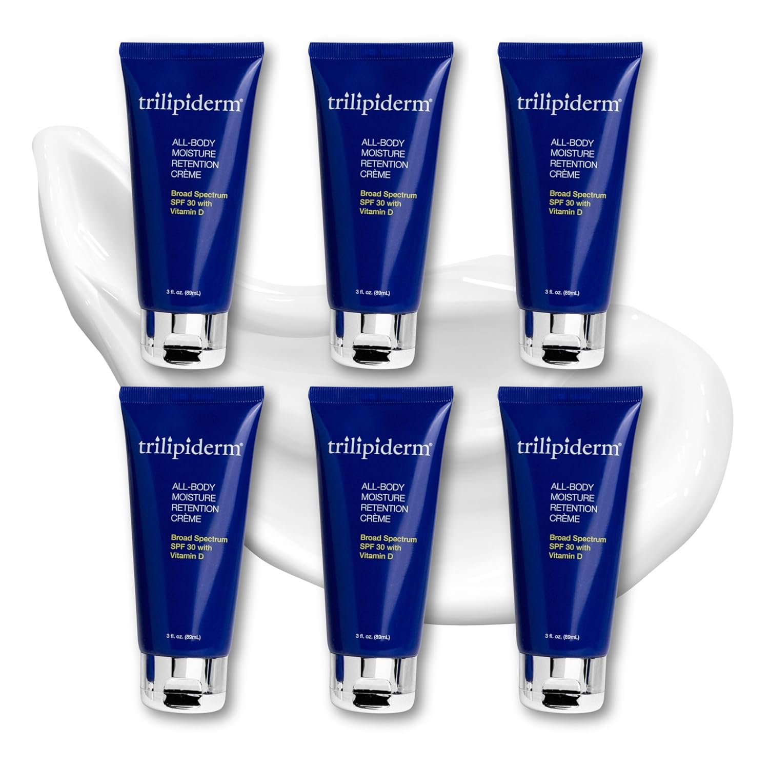 Trilipiderm 3oz TSA Travel Size 6-Pack All-Body Moisturizer with SPF 30 for Body, Face, Hands, & Feet