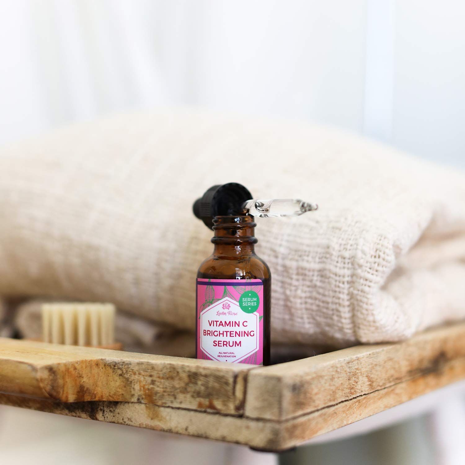 Vitamin C Brightening Serum by Leven Rose 100% Natural Dark Spot Remover for Face for Collagen Boost, Anti-Aging, Deep Hydrating for Dry Skin, Collagen Building Face Moisturizer 1 oz