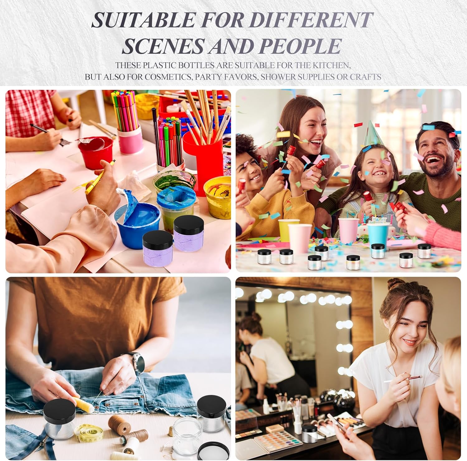 - Quality material: the 1 oz plastic jars with lids are made of quality clear plastic, without odd smell, does not contaminate your skincare products, stable, high temperature resistance, a black plastic cover with lid, sealed storage and leak proof