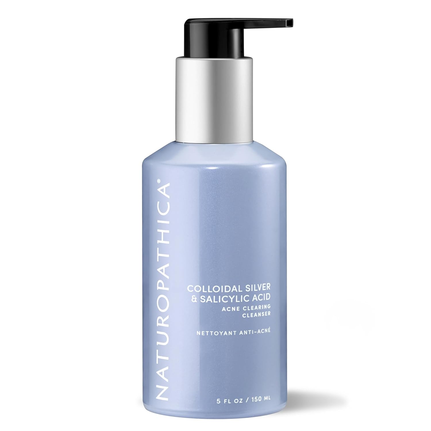 Naturopathica Colloidal Silver and Salicylic Acid Acne Clearing Cleanser, Reduce Blemishes and Acne Scars, Clarifying Face Wash for Men and Women, 5 fl oz