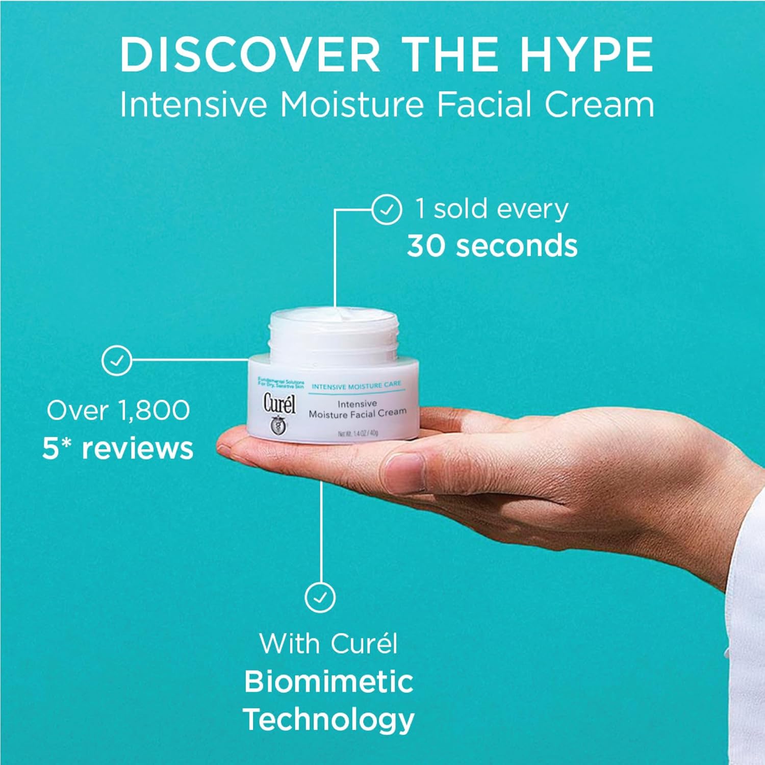 Curel Japanese Skin Care Intensive Face Moisturizer Cream, Hydrating Face Lotion for Dry to Very Dry Sensitive Skin, Anti-Aging, Fragrance-Free, Anti-Wrinkle Japanese Skin Care, 1.4 Oz