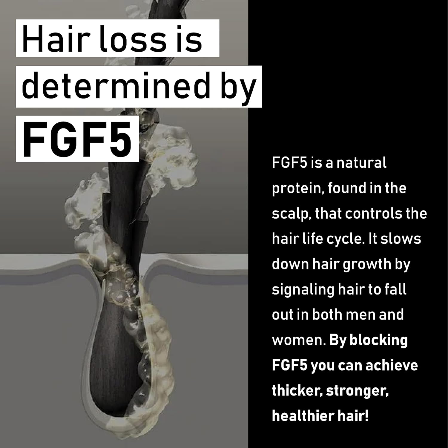 - Proprietary Blend of Scalp-Nourishing Actives – A powerful scalp treatment infused with a blend of antioxidants, natural hair thickening products, and FGF5 blocking botanicals, a key protein responsible for hair loss, to extend the hair’s natural growth cycle. The self-dosing pipette ensures precise application, delivering the right amount of product for optimal scalp and strand care.