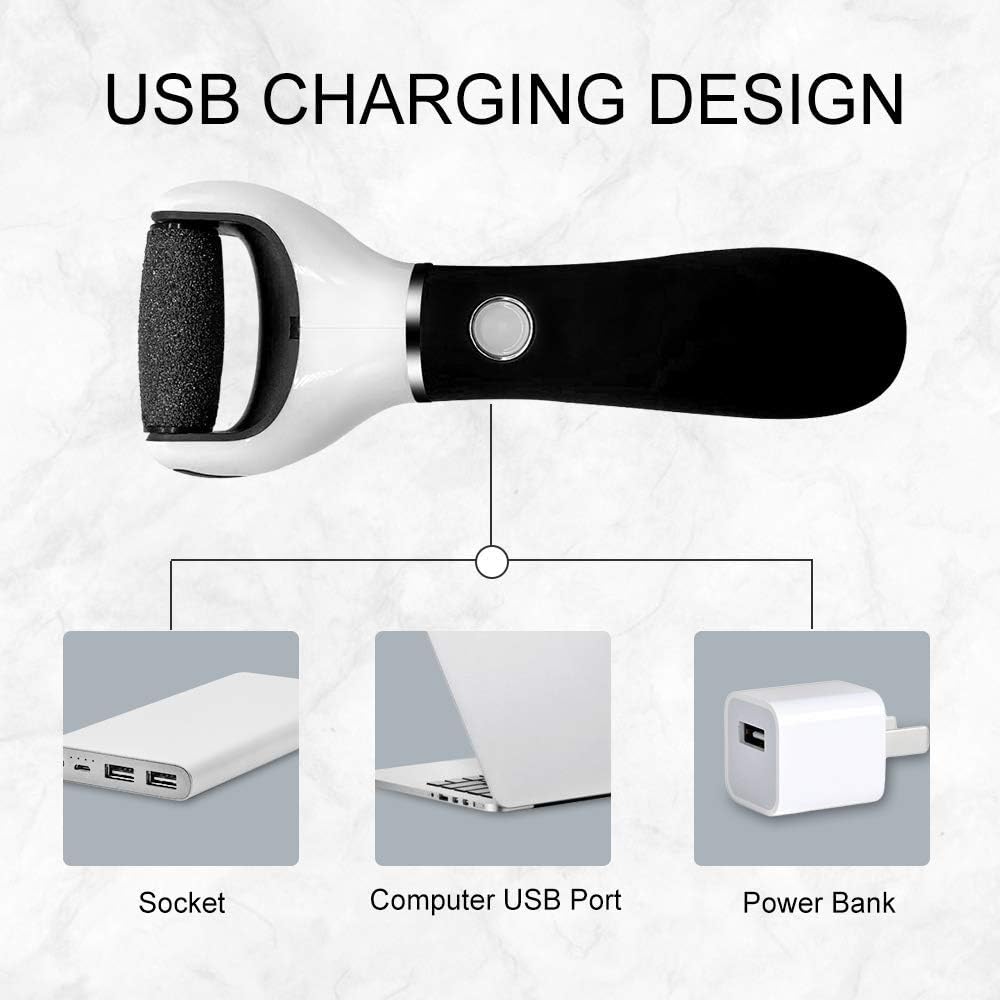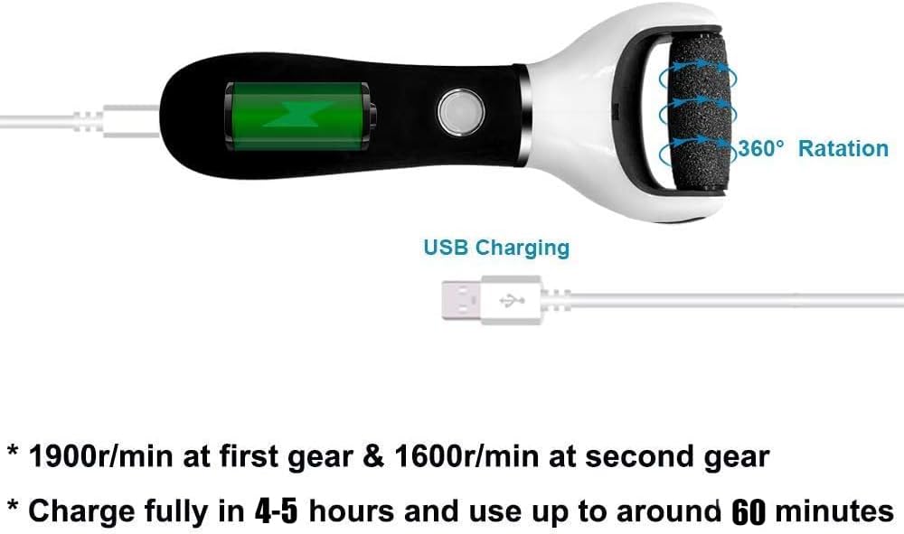 - Easy to clean: 2 rollers for soft and hard callus, also easy to replace and clean the roller of foot file. But please don't immense this foot care device into the water or shower it