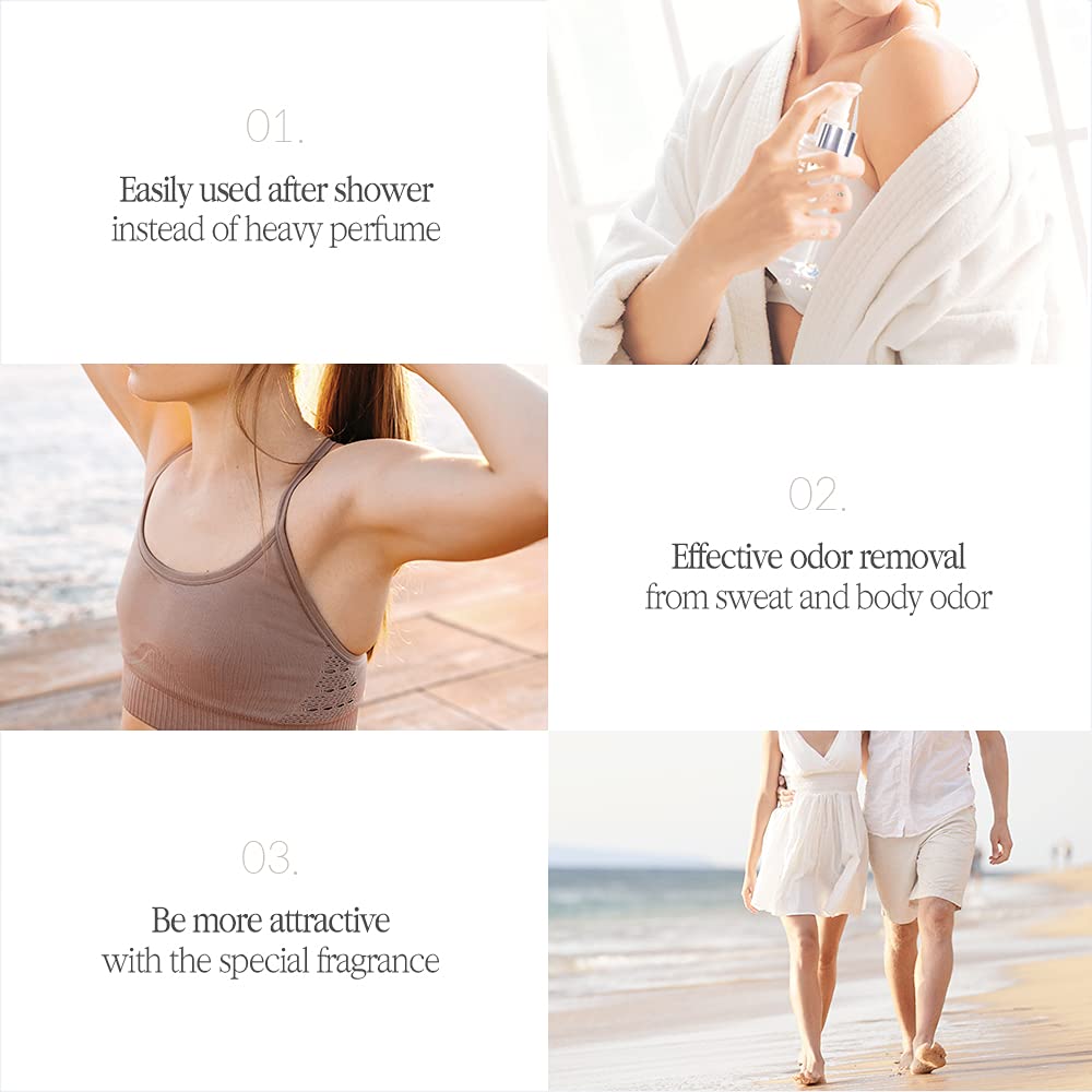 - SOOTHING SKIN - The body mist contains Citric Acid from fruits, which smooths skin texture by dissolving dead skin cells and impurities. It also helps control excess sebum, leaving your skin feeling healthier and more protected.