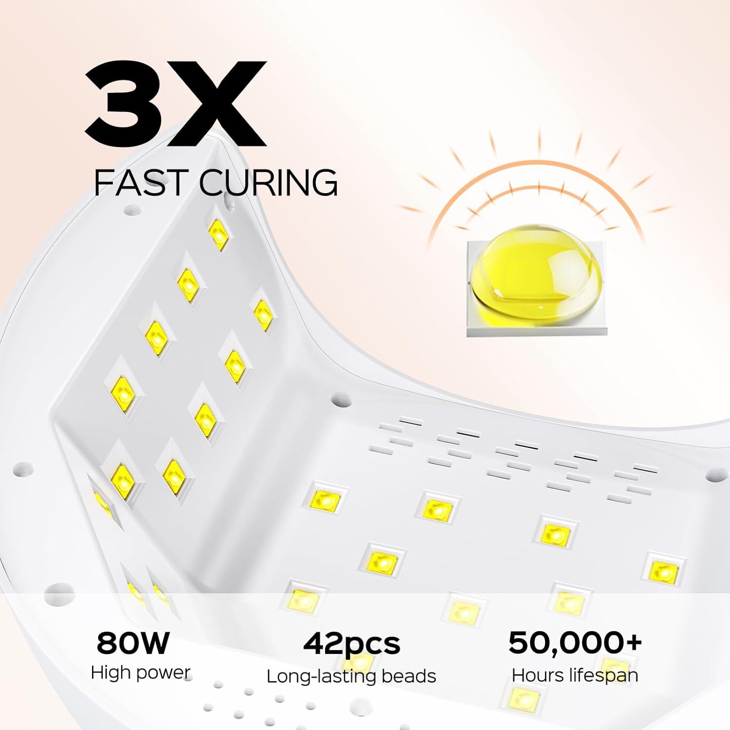 - 【Professional Salon-Quality】BOLASEN UV LED nail lamp is the choice of millions of nail technicians worldwide. Boasting an 80W power and 42pcs UV LED dual light sources with lifespan of over 50,000 hours, it's guaranteed to cure all gel nail polish quickly and effectively. Your average curing time is reduced by 50%! With a mirror side metal base, our nail lamp provides better light reflection, reducing light loss and shorting curing time than lamps with ABS base.