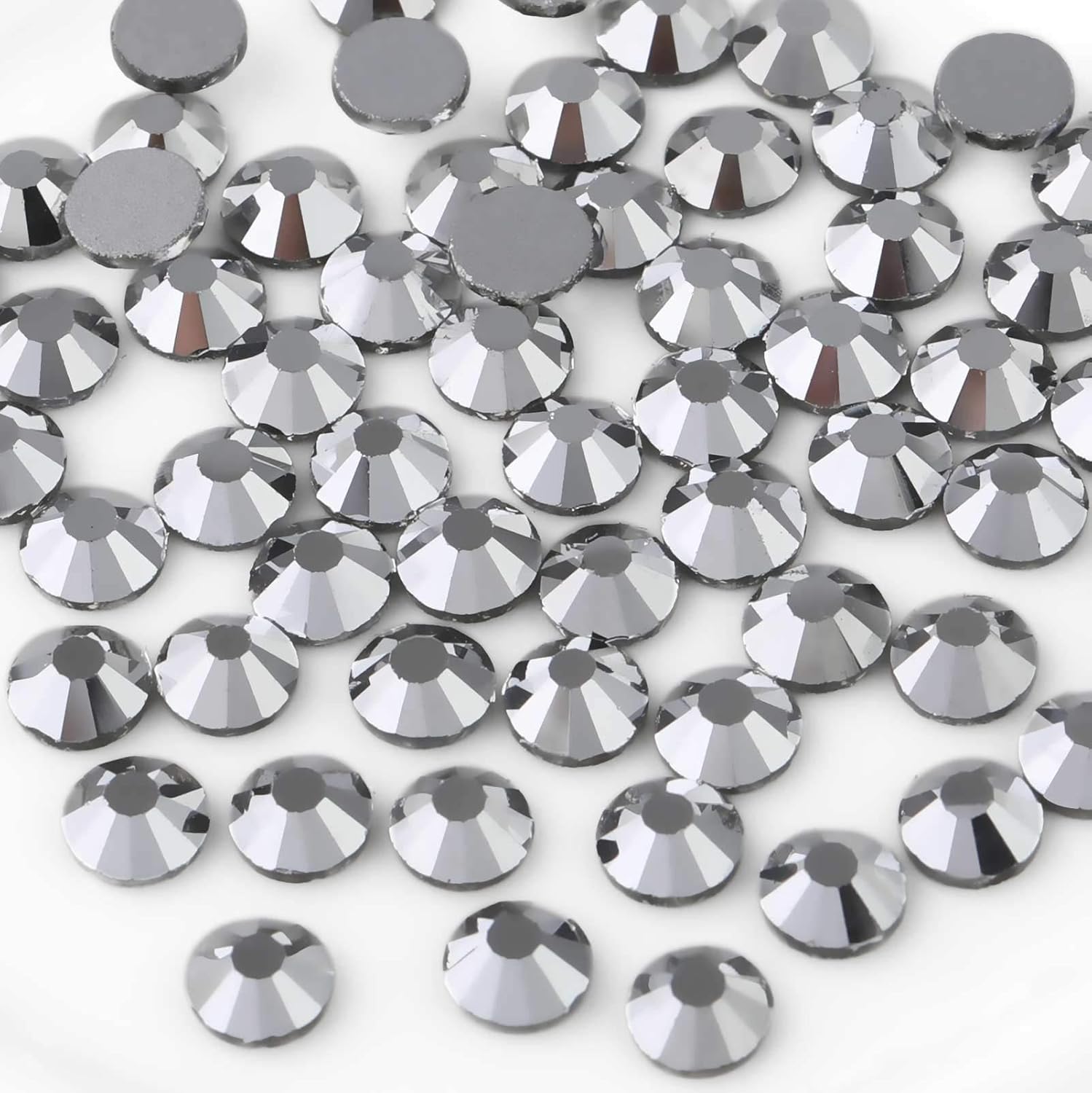 beadsland Flat Back Crystal Rhinestones Round Gems for Nail Art and Craft Glue Fix,Silver Hematite (6.4-6.6mm) SS30/288pcs