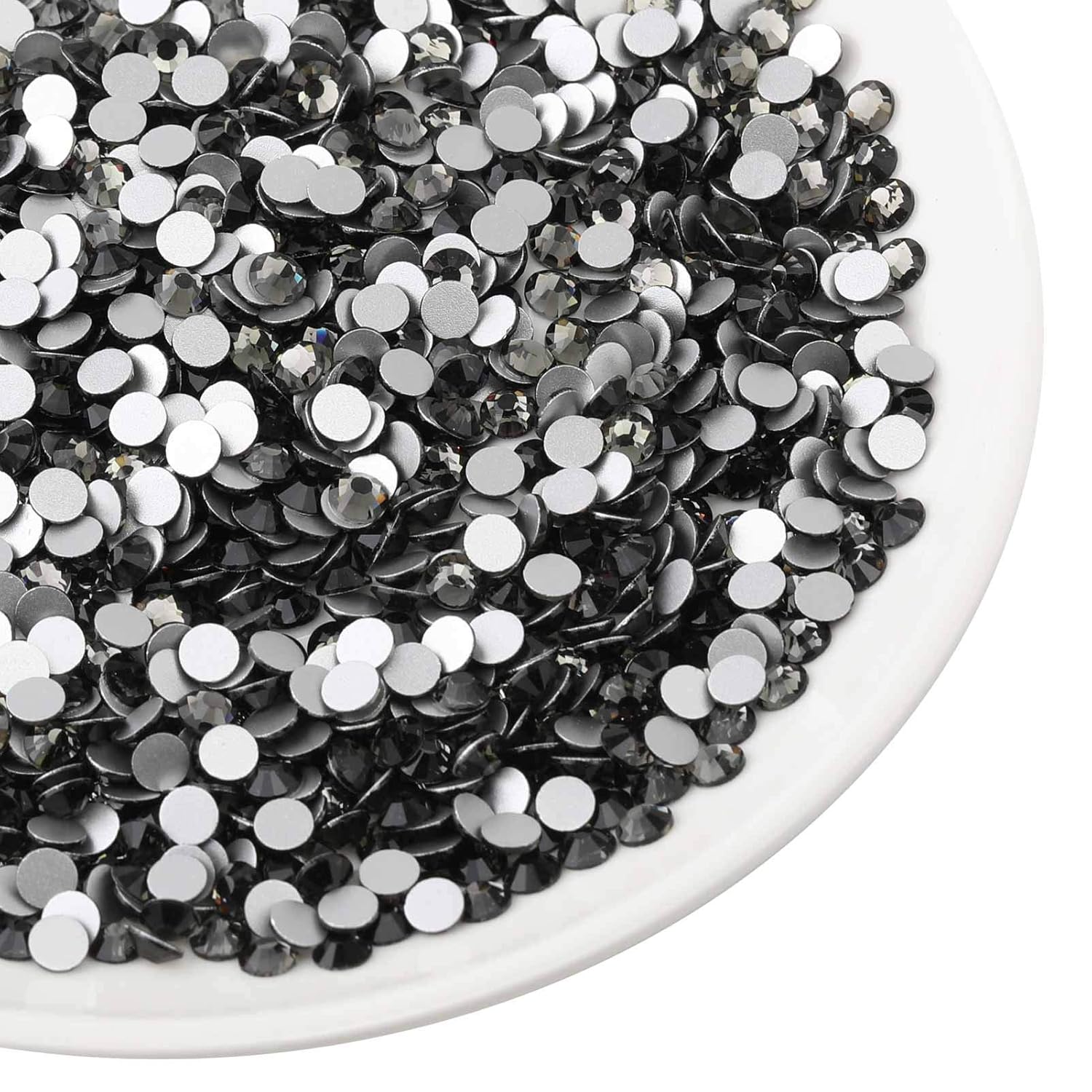 beadsland Flat Back Crystal Rhinestones Round Gems for Nail Art and Craft Glue Fix,Black Diamond (3.8-4.0mm) SS16/1440pcs